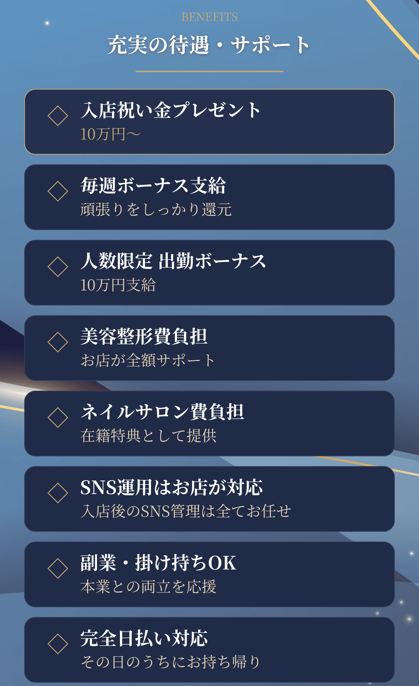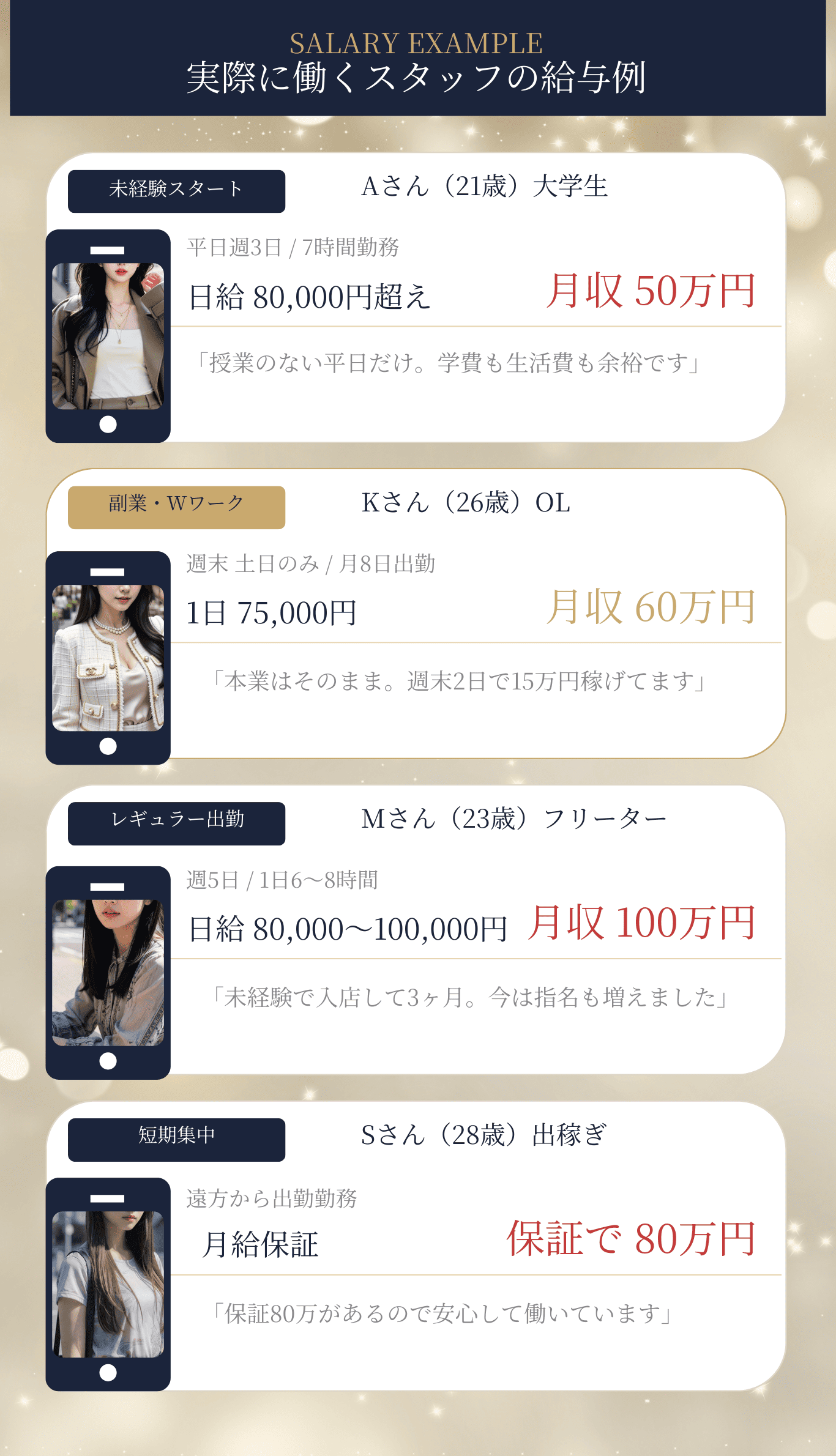 - 募集職種 日払い制のスナック キャスト フロアレディ&ボーイスタッフも大募集
