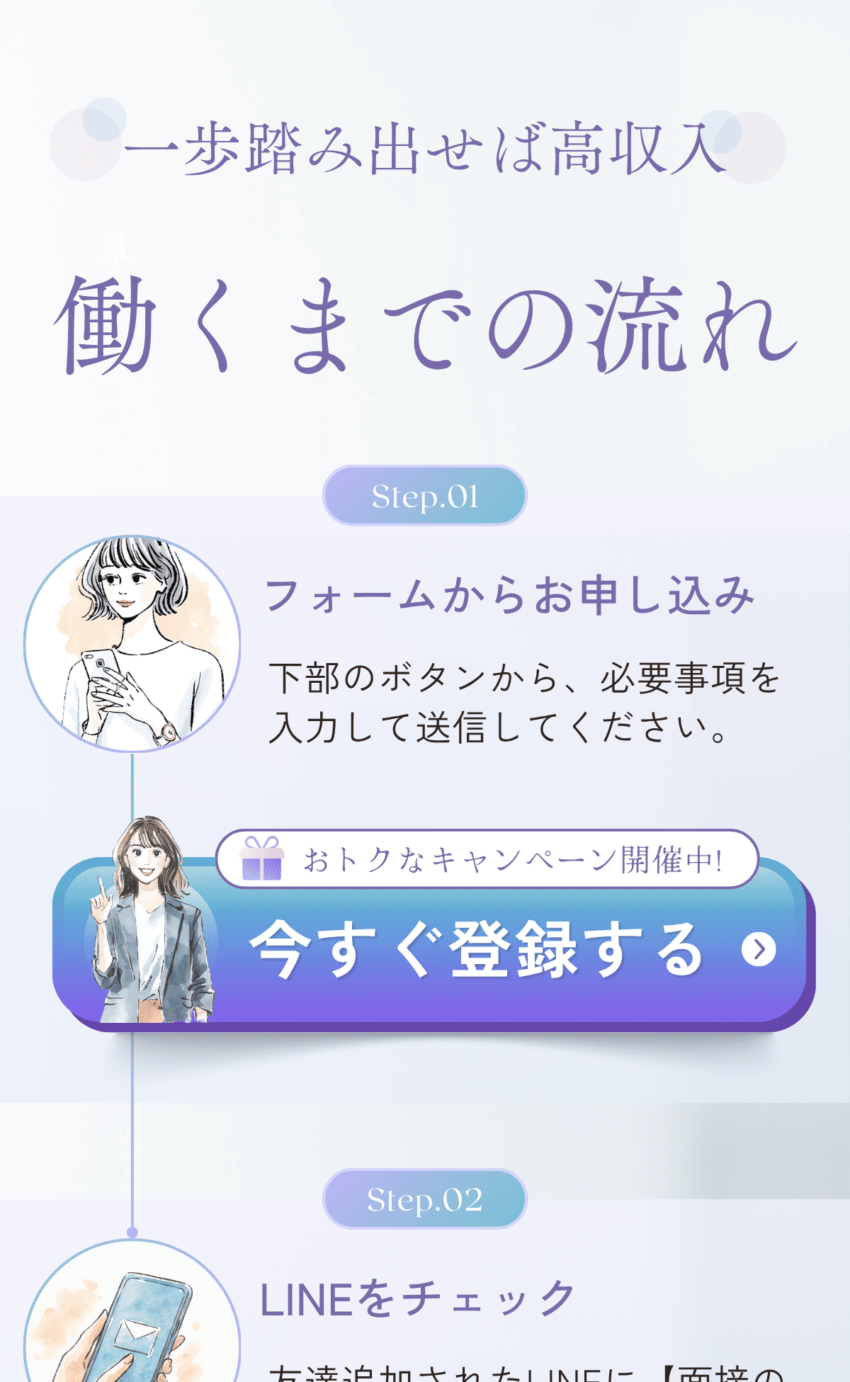 50%の方がとりあえずLINE追加だけ!体験したい時に連絡されます! LINEを追加してみる広告限定特典も! 50%の方がとりあえずLINE追加だけ!体験したい時に連絡されます! LINEを追加してみる広告限定特典も!